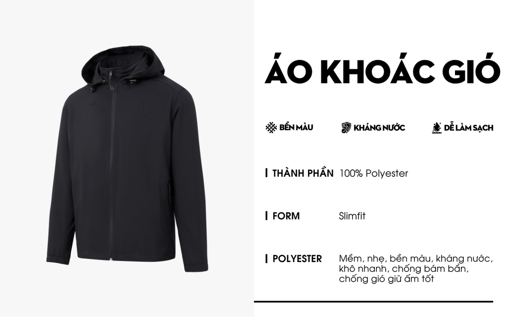 Áo Khoác Gió Thiết Kế 2 Lớp Có Mũ Tháo Rời Kháng Nước Tốt 9AG2T001BEI - Tặng 1 Đôi Tất