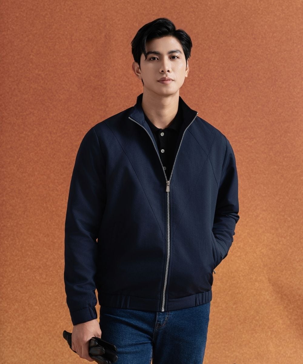 Thiết kế: Basic kết hợp các đường bổ chéo chữ X tạo điểm nhấn, cổ đứng, bo cổ, gấu và tay áo, túi trong và 2 túi có khoá kéo tiện dụng