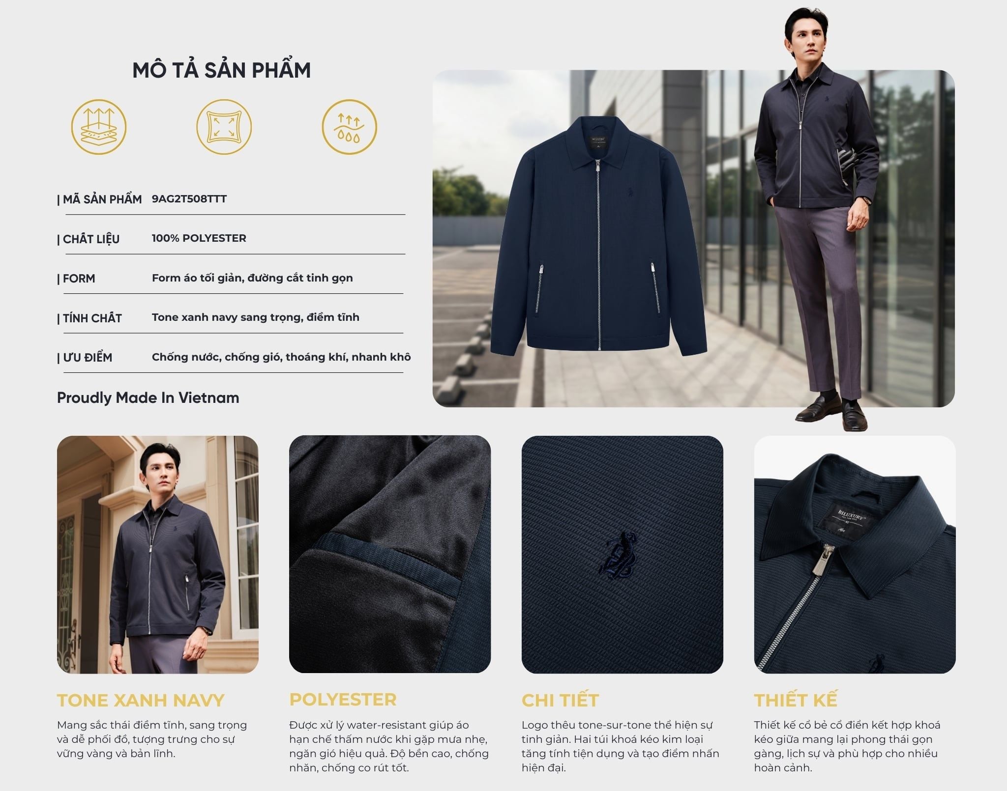 Áo Khoác Gió 2 Lớp Cao Cấp, Giữ Ấm, Chống Nước, Chống Bụi Bẩn 9AG2T508TTT