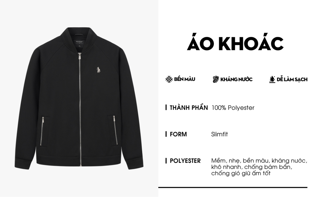 Áo Khoác Nỉ Dạ Cao Cấp, Giữ Ấm, Chống Bụi Bẩn 9ANKT506DEN