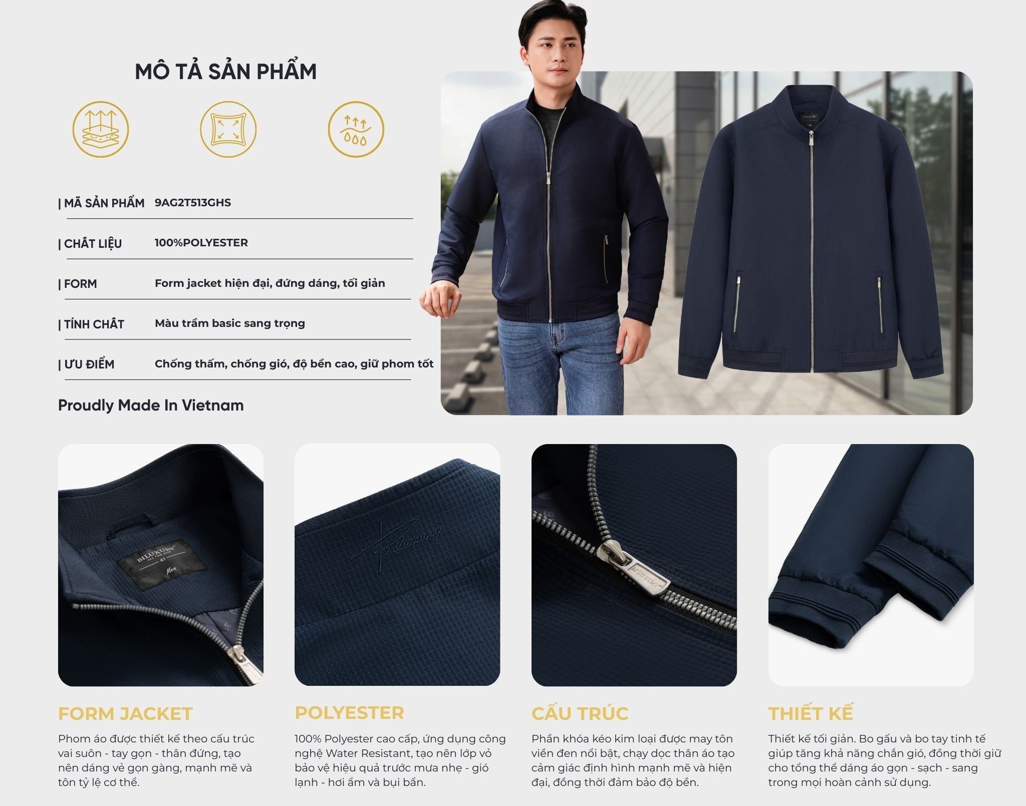 Thiết kế: Thiết kế tối giản. Bo gấu và bo tay tinh tế giúp tăng khả năng chắn gió, đồng thời giữ cho tổng thể dáng áo gọn - sạch - sang trong mọi hoàn cảnh sử dụng.