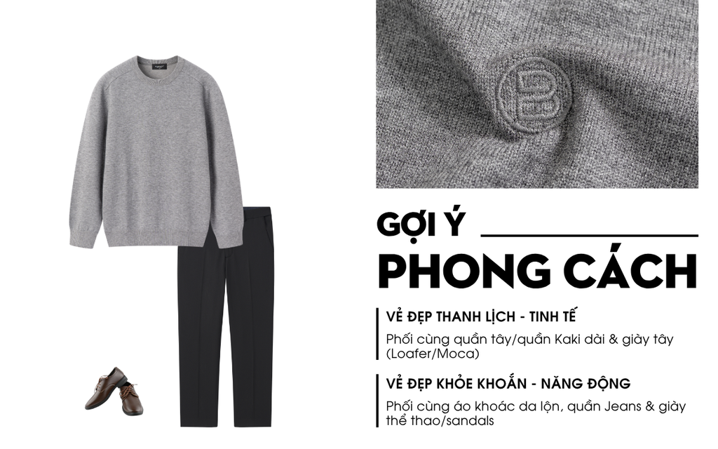 Áo Len Lông Thỏ Ghi Sáng Cổ Tròn, Thiết Kế Basic Giữ Ấm Tốt 9ALRT500GHS