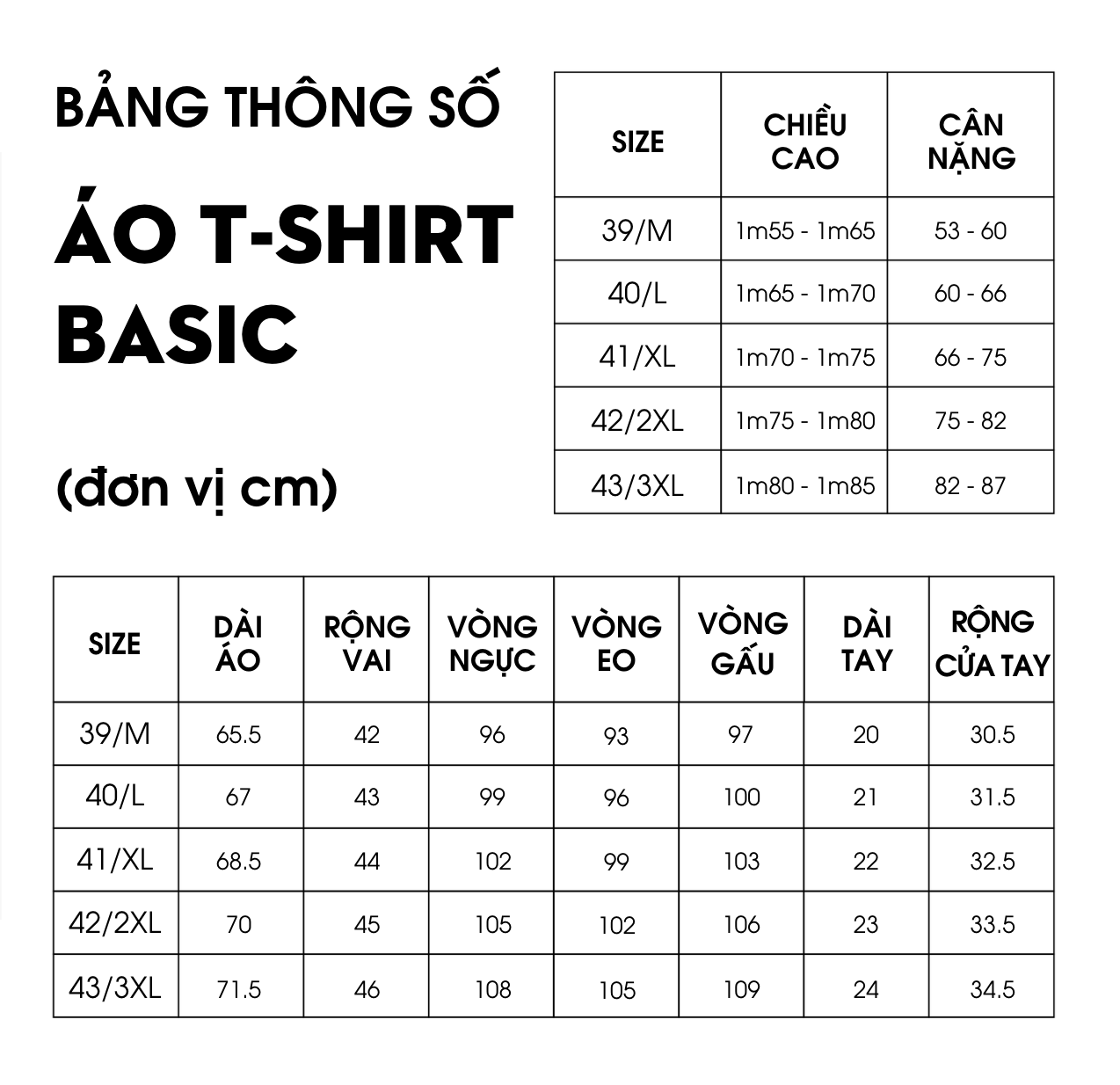 • Ví dụ chiều cao theo size L nhưng cân nặng theo size M. Hãy chọn L.