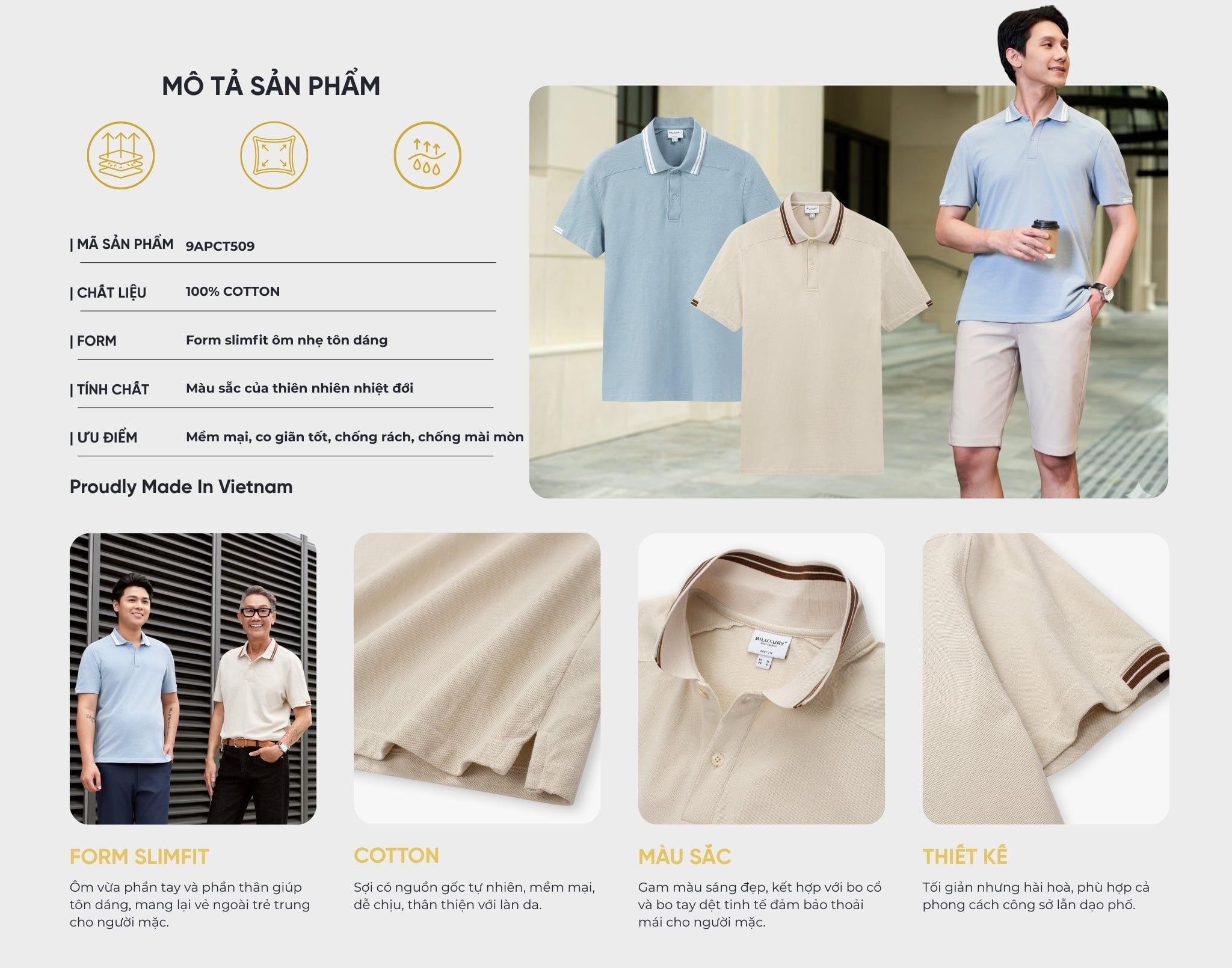 Áo Polo Cotton Xanh/Be, Cao Cấp, Chống Nhăn, Bền Màu 9APCT509XAH/BEI