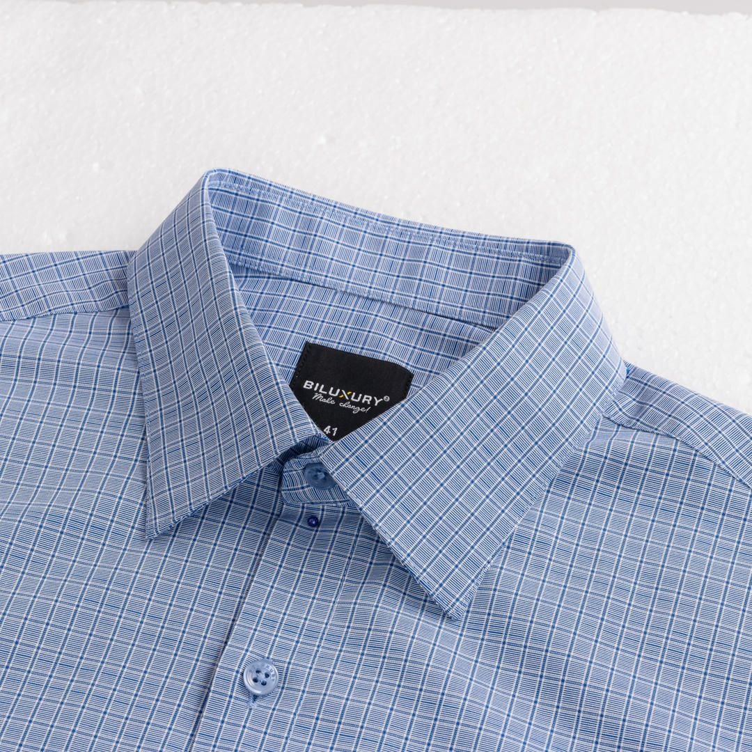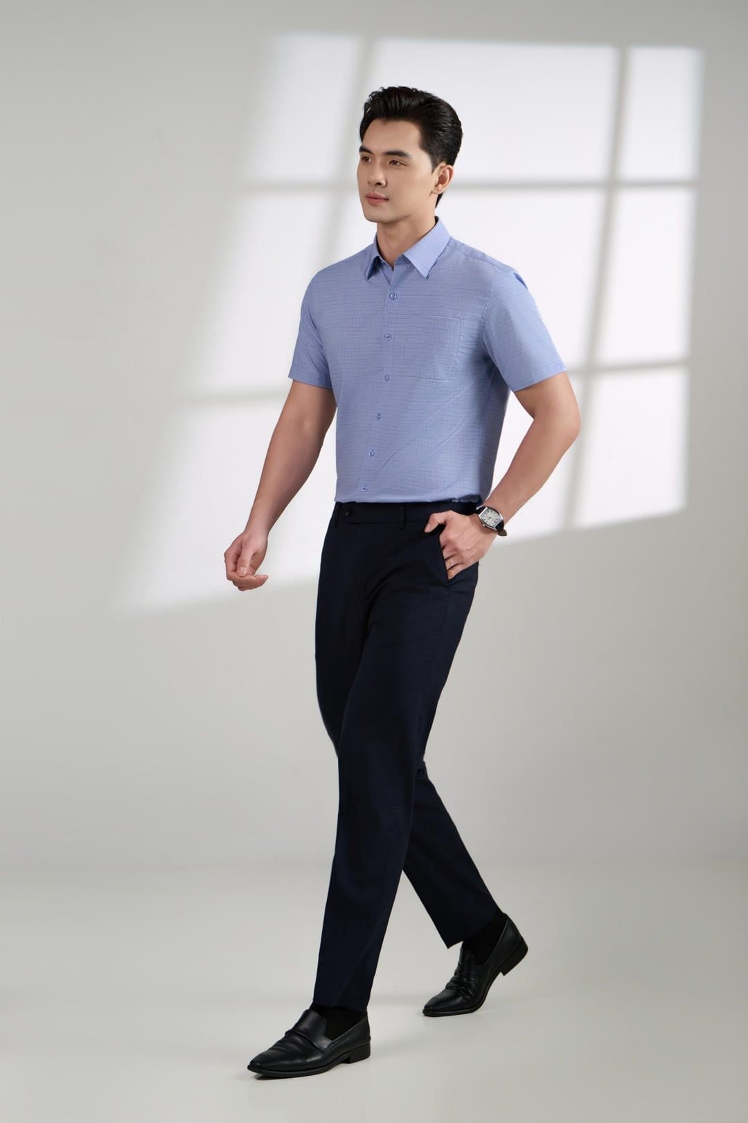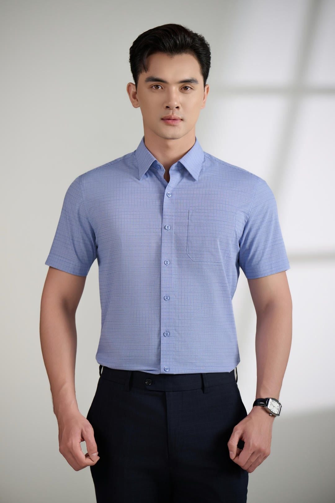 Áo Sơ Mi Cộc Tay Xanh Caro Thiết Kế Có Túi Cao Cấp 9SMCC538XAH