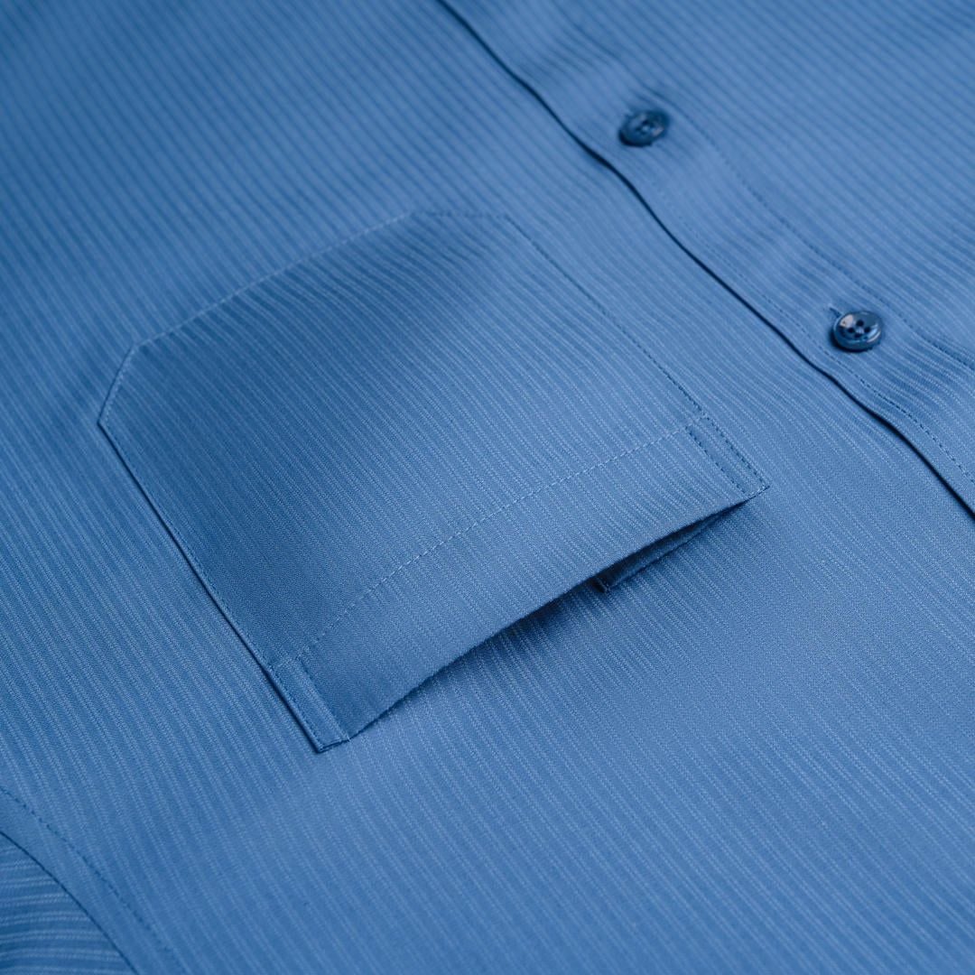 Áo Sơ Mi Cộc Tay Xanh Thiết Kế Túi Ngực Biluxury 9SMCB558XAH