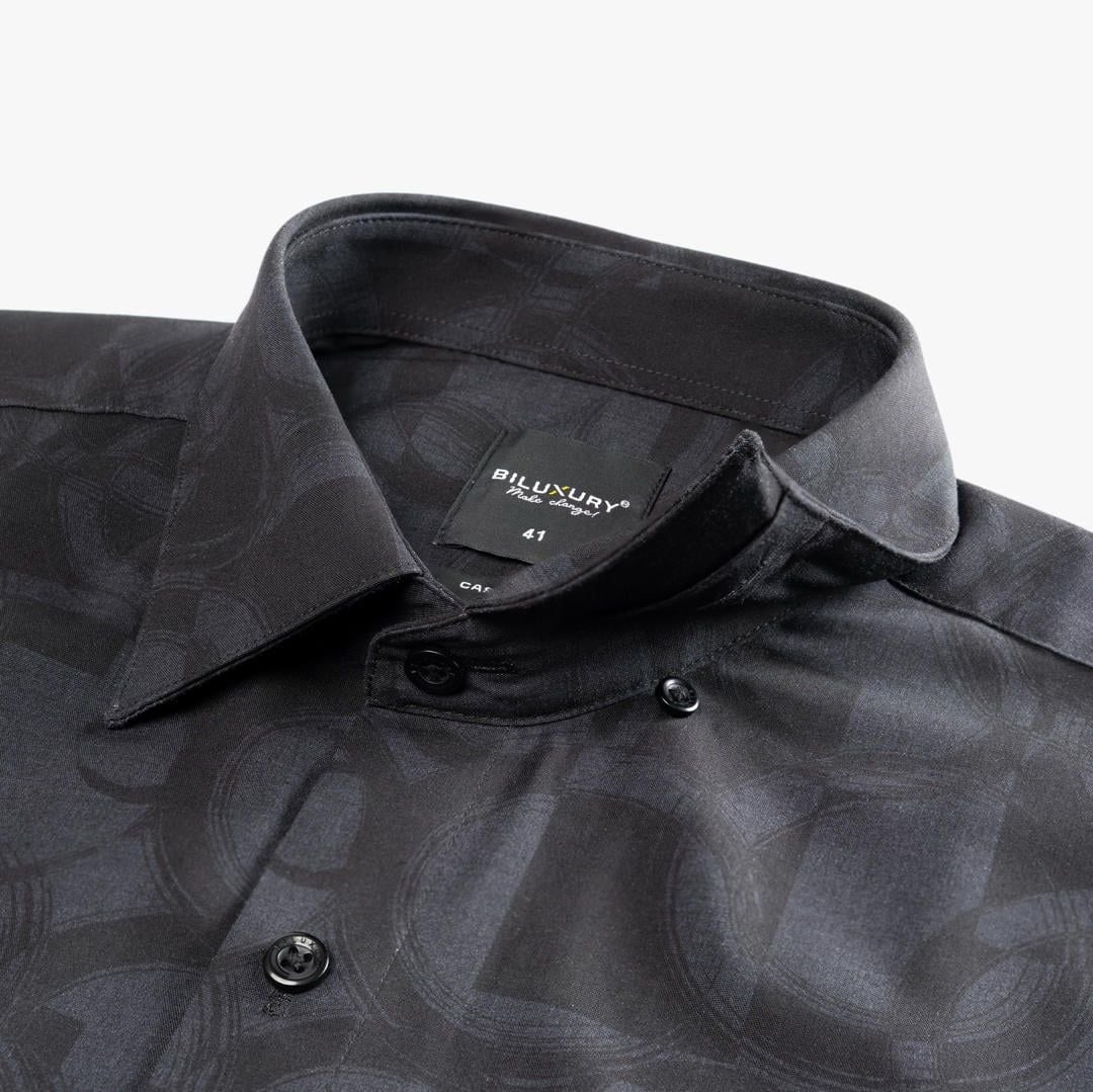 Áo Sơ Mi Dài Tay Đen Thiết Kế Hoạ Tiết Cao Cấp 9SMDH514DEN