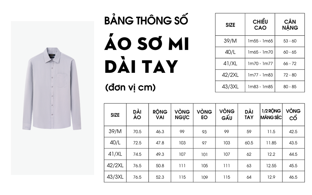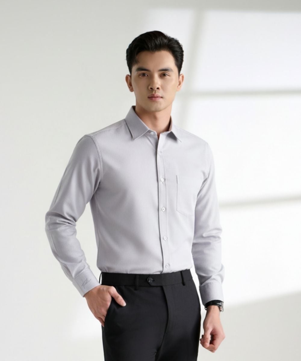 Áo Sơ Mi Dài Tay Ghi Xám Cao Cấp, Chống Nhăn Nhàu, Chống Bám Bẩn 9SMDB549GHS