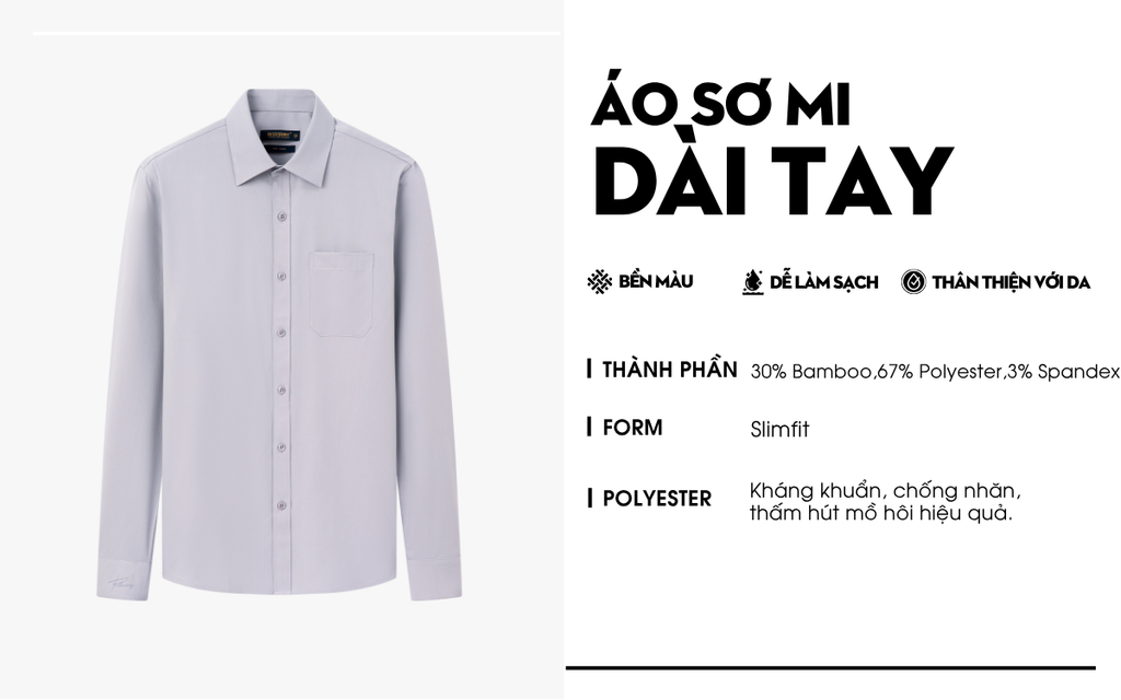 Chất liệu: Thành phần 30% Bamboo, 67% Polyester, 3% Spandex
