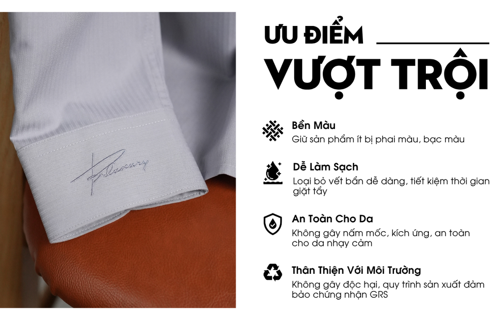 Ưu điểm: chống nhăn, mềm mại, co giãn nhẹ, thoáng khí.