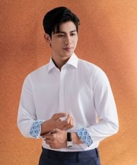 Áo Sơ Mi Dài Tay Trắng Phối Cổ Hoạ Tiết Giữ Phom Tốt 8SMDT416TRK