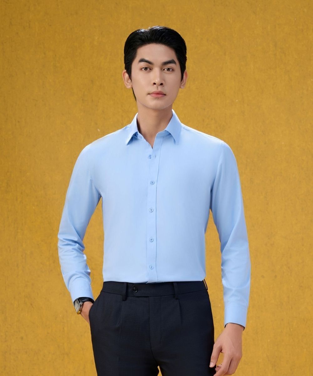 Áo Sơ Mi Dài Tay Xanh Cao Cấp, Chống Nhăn Nhàu, Chống Bám Bẩn 9SMDB550XAH
