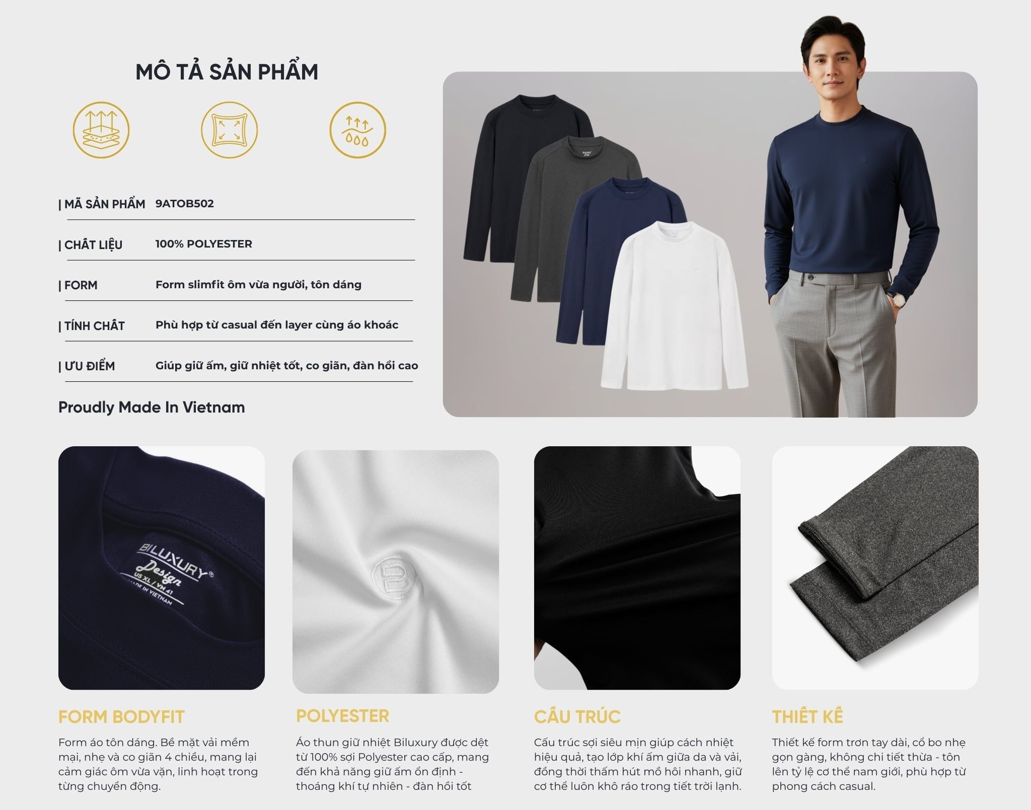 Kiểu dáng: Form slimfit ôm vừa người, tôn dáng