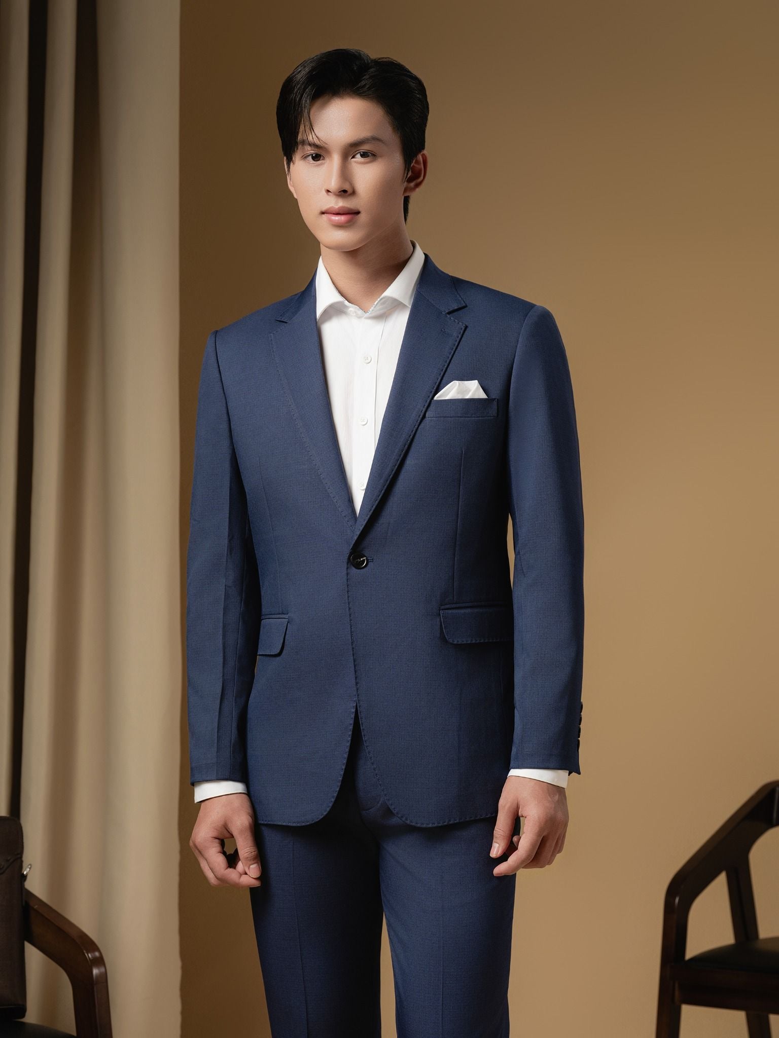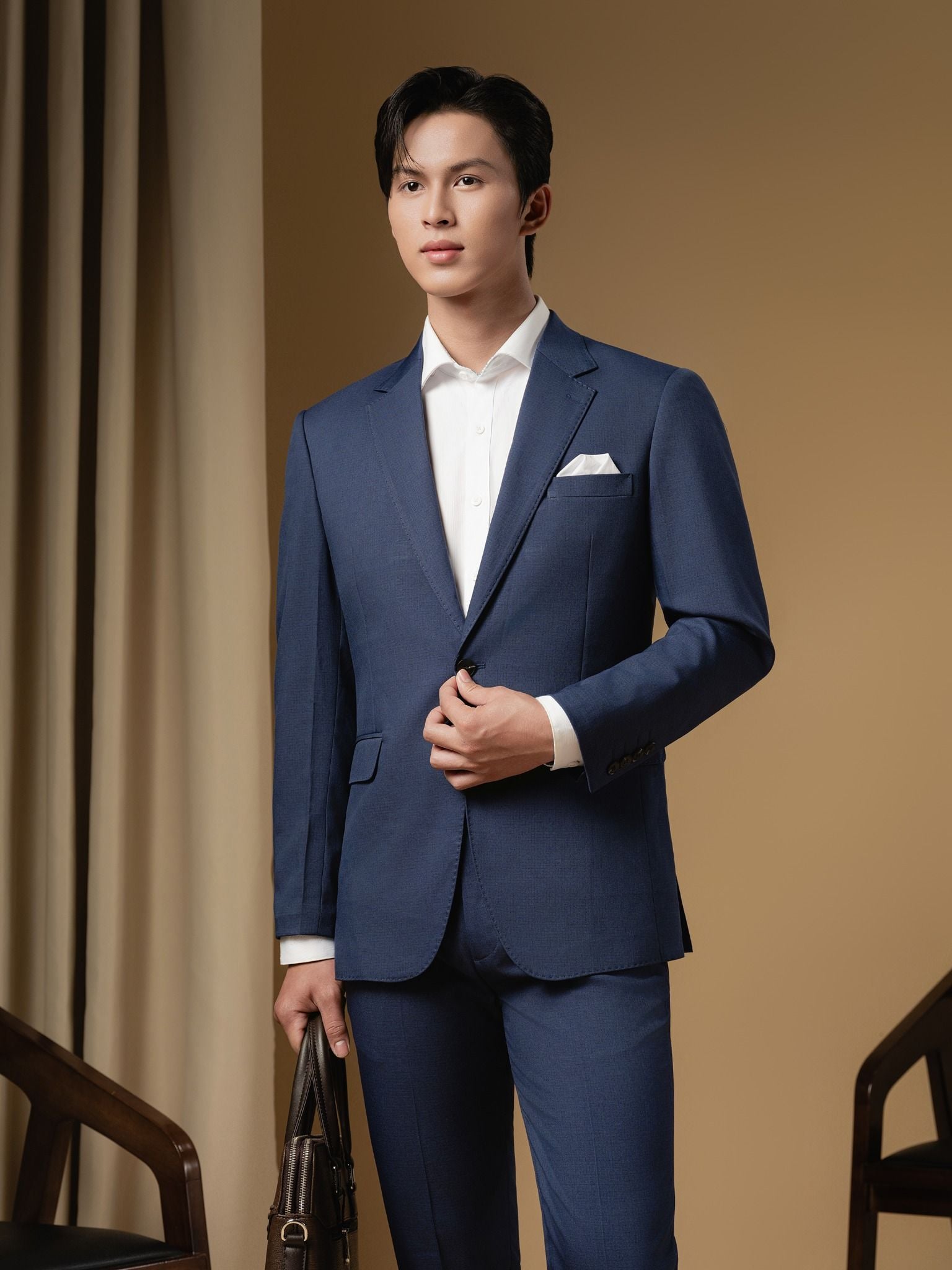 Thiết kế: Áo ve K tinh tế, sang trọng, có cúc, túi ngực & Quần âu basic, 2 túi xẻ và 2 túi sau cài khuy