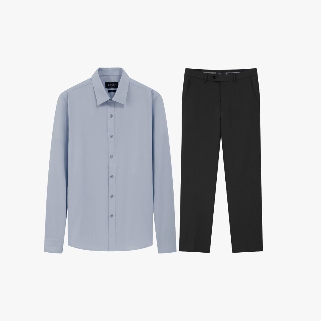 Combo Áo Sơ Mi Dài Tay Và Quần Âu Đen Cao Cấp 9SMDB547 - 9QAUB536