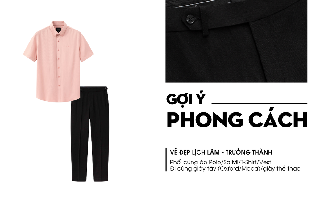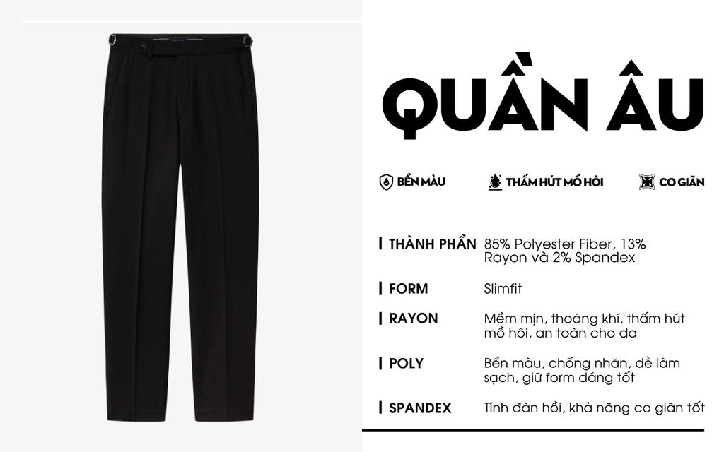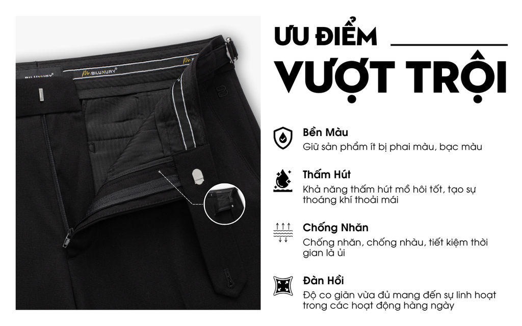Quần Âu Đen SideTab Chống Nhăn, Co Giãn, Chống Bám Bẩn 9QAUT507DEN
