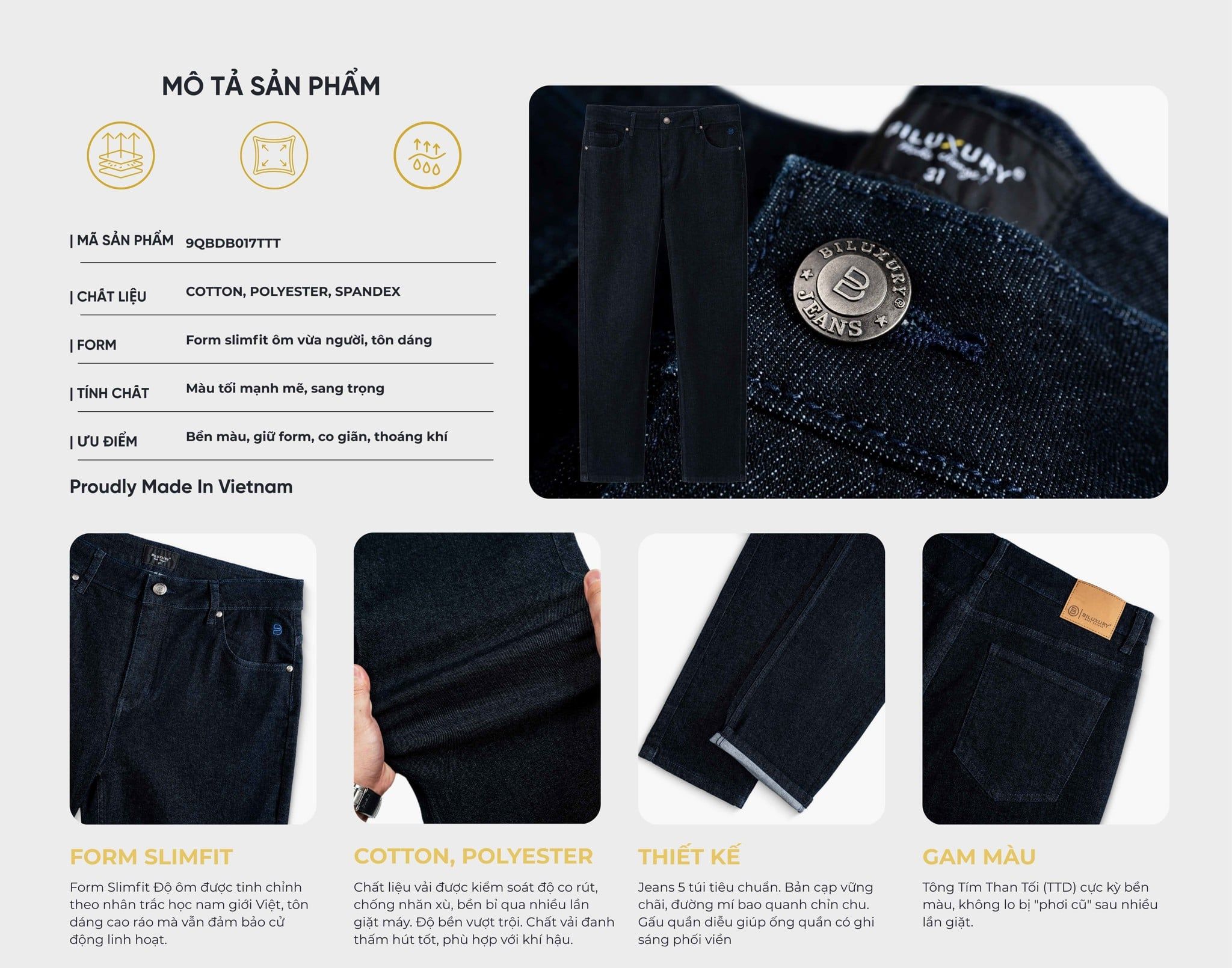 Kiểu dáng: Slimfit ôm vừa, không bó sát