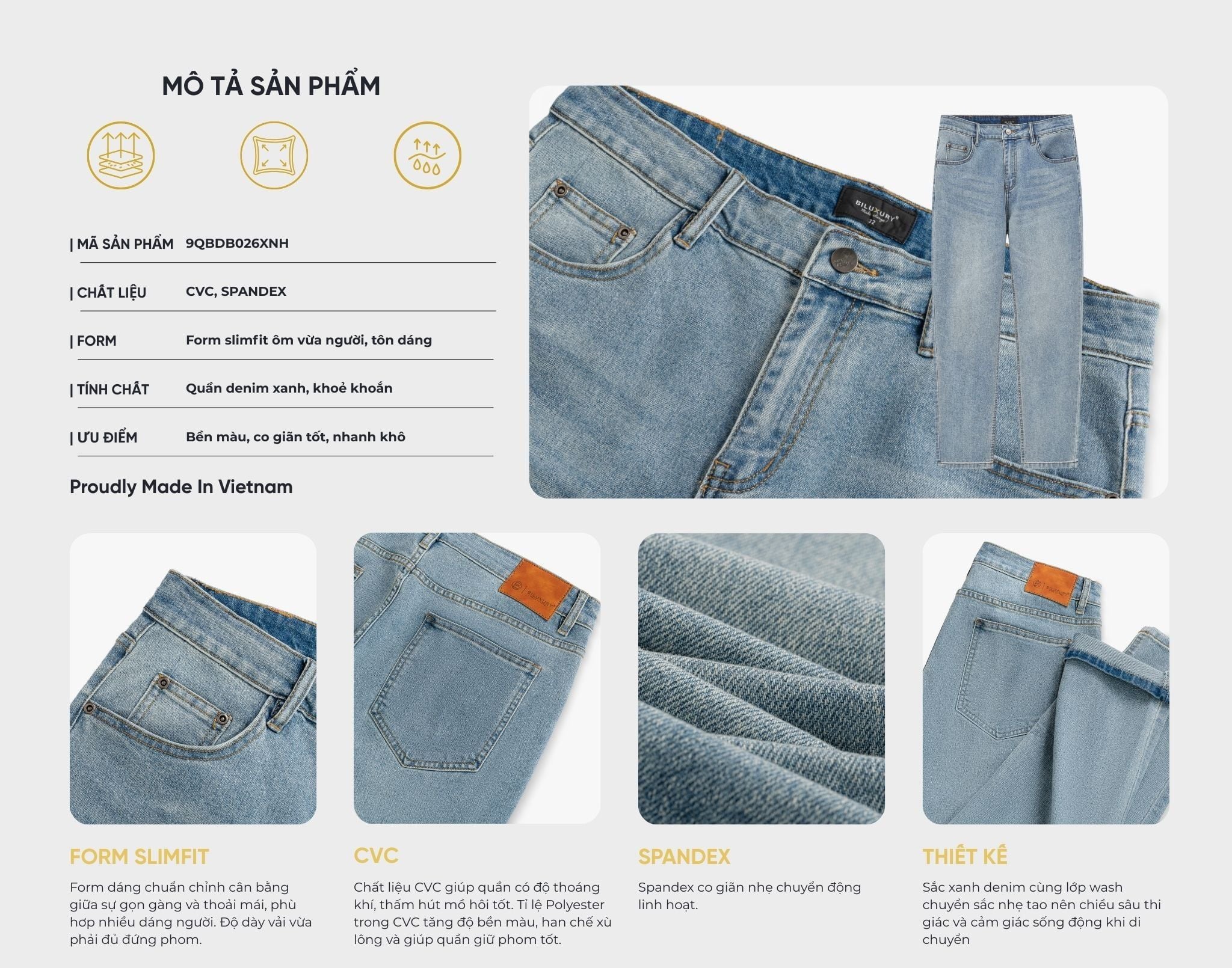 Quần Jeans Xanh Nhạt Cao Cấp Bền Màu, Chống Xù, Giữ Form 9QBDB026XNH
