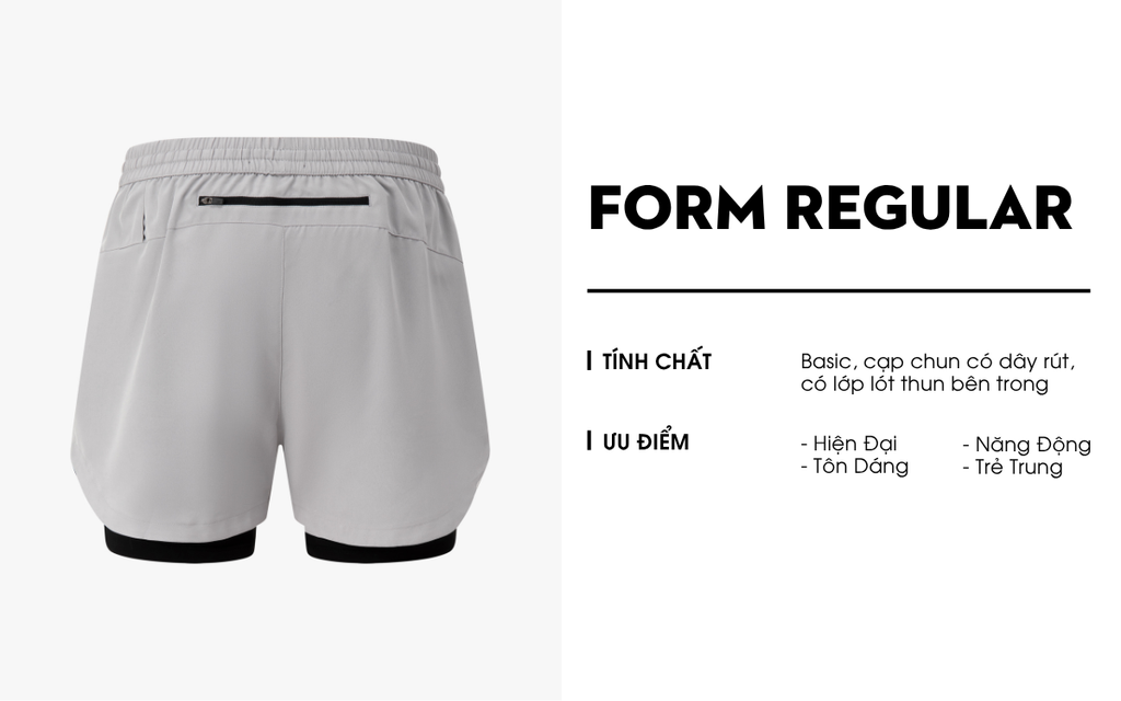 Thiết kế: Basic, có lót thun bên trong, túi khóa mông sau